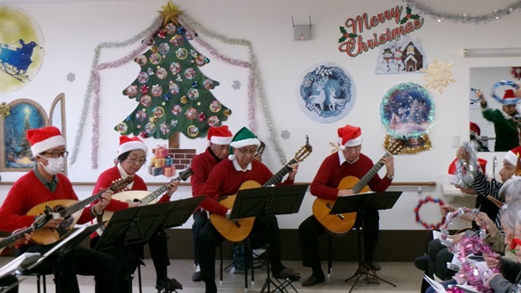 | 磐田市福田にあるデイケアサービスウェルビ福田にて 慰問演奏をおこないました。 演奏開始 14:00〜 演奏曲目 ♪丘を越えて ♪荒城の月 ♪月の砂漠 ♪懐メロメドレー(東京ラプソディー、青い山脈 等) ♪ふるさと ♪浜辺の歌 ♪童謡集(幼き日の想い出) ♪津軽海峡冬景色 ♪北国の春 ♪ジングルベル |